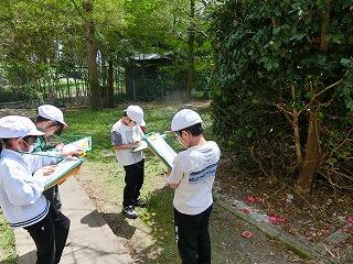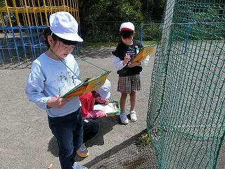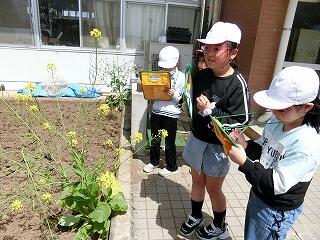3年生が初めて理科の授業をしました。外に出て、春の自然を探しました。春になって咲いた花や、温かくなって出てきた虫などを、たくさん見つけることができました。