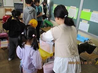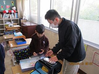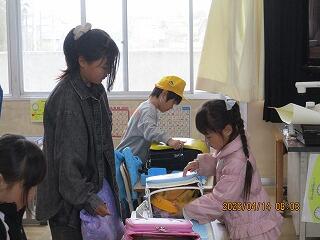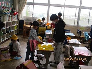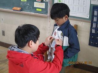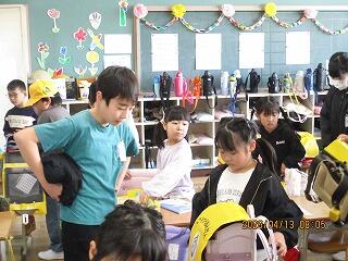 4月14日(火) 6年生 1年生の朝の準備のお手伝い