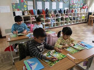 今年度の図書館の利用が始まりました。オリエンテーリングを行い、図書館の使い方や本の借り方・返し方などを再確認しました。本を借りたあとには、新コーナーで本を読んでいました。今年度もたくさん本を読みましょう!