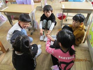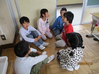 また、体育では、お着替えや並び方の練習をしたり、フルーツバスケットをしながら自己紹介をしたりしました。