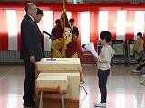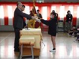 学年代表の児童は修了証書を立派な態度で受け取りました。花丸