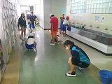 プールの約束をみんなで確認し、6年生の代表児童が水泳の目標を発表しました。