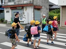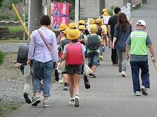 安全ボランティアの皆さんに見守られながら下校しています。