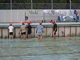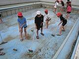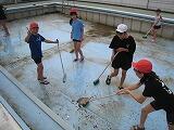 プールの約束をみんなで確認し、6年生の代表児童が水泳の目標を発表しました。