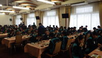夕食後は立志式を行いました。クラスごとに立志の決意表明を1人ずつ発表しました。
