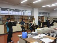 本校から金管五重奏と木管六重奏のグループが出場しました。金管五重奏は「スカイライン・モチーフ」、木管六重奏は「アルタミラ」を演奏しました。どちらも心に響く素晴らしい演奏でした。(写真は会場では撮影できなかったので、練習風景です。)