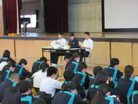 1年生の総合的な学習「わがまち岩舟」の一環で、岩舟弁天一座の皆様をお迎えし、岩舟地域に伝わる郷土芸能を見せていただきました。生徒の体験もあり、郷土芸能に関心をもつことができました。弁天一座の皆様、ありがとうございました。