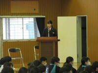 修了式を行いました。各学年の代表に修了証を手渡し、今年度の反省と新年度の抱負が発表されました。