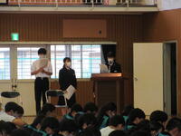 2学期がスタートしました。残暑が厳しい朝となりましたが、元気に登校してくれました。始業式は、エアコンが設置された体育館で行いました。各学年代表による2学期の抱負では、2学期の目標をしっかりと発表することができました。この2学期も充実した日々を送ってほしいと思います。