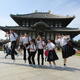 法隆寺前で昼食をとり、法隆寺、薬師寺、東大寺を見学しました。これから京都の旅館に向かいます。