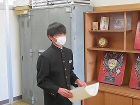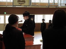 昨年12月に決定した新生徒会役員と第3学期の学級委員の任命を、昨日の始業式と同様リモートで行いました。適度な緊張感の中に、「がんばろう。」という意欲を感じました。
