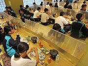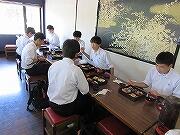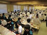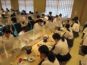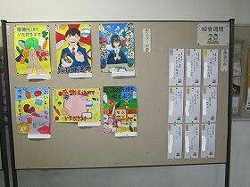今週は給食週間です。全クラスがクラスで話し合って1つの「食事訓」を作り、個人では1年生が作文とポスターのどちらかを、2年生が標語と希望者がポスターを、3年生が標語を作りました。標語とポスターの優秀作は職員室前に掲示しました。作文の優秀作は放送で朗読してもらいます。そして全校生徒が給食調理員さんに感謝の言葉を書き、調理員さんに渡します。お世話になっている方への感謝の心は忘れないでほしいです。