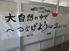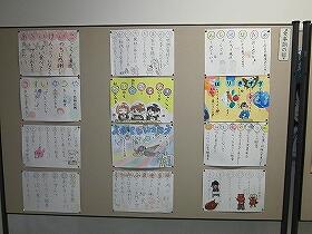 コスモスホールに入ったところのロビーには総合的な学習で調べた「わがまち岩舟」のまとめが展示されていました。
