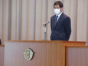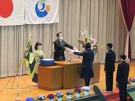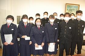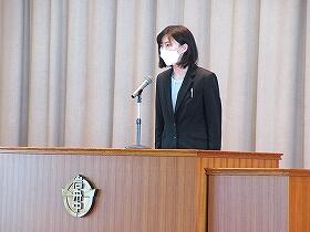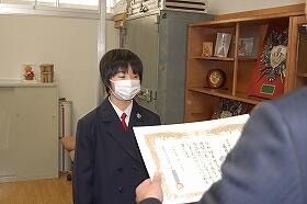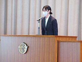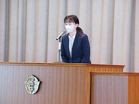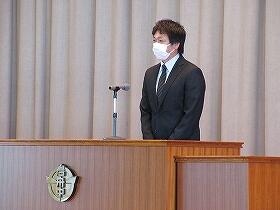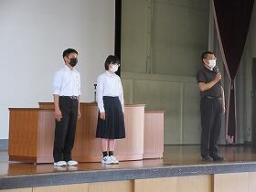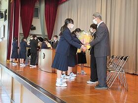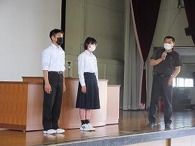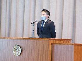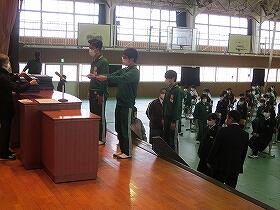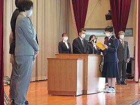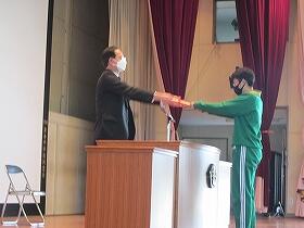 任命集会に先立って表彰を2件行いました。文化面、運動面の表彰で、多方面で活躍していることがうかがえました。