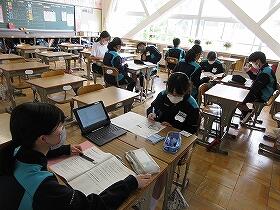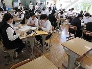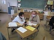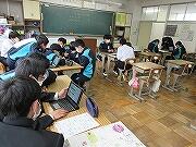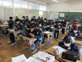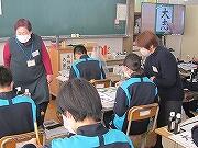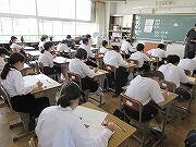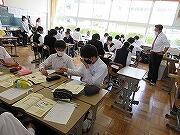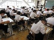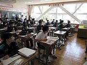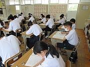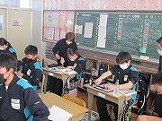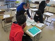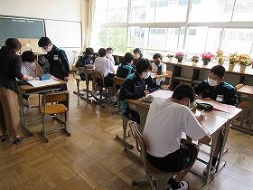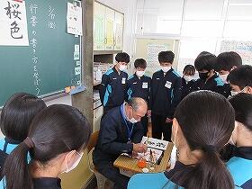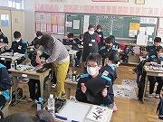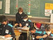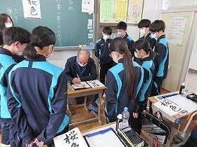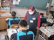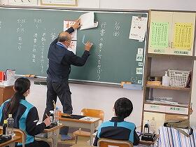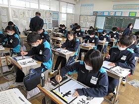 今日は国語科(書写)のボランティアの方に来ていただいて、授業をお手伝いいただきました。教員一人では1時間の中で一人一人に細かく教えていくのは難しく、ボランティアの方に来ていただくことはありがたく思っています。生徒たちもすぐに見てもらえて教えてもらえるので充実した時間が過ごせているようでした。