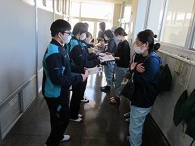 いよいよ県立高校の入学検査が来週に迫ってきました。筆記試験に加えて面接試験のある友達に、面接官役をやって協力する姿が見られました。「みんなで頑張ろう!」という雰囲気が伝わってきました。