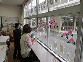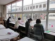 用意したものを貼り終わったところで、下の方が寂しいということになり、その場で福寿草を作って追加で貼っていただき完成しました。