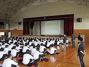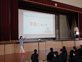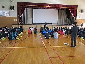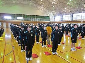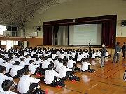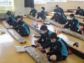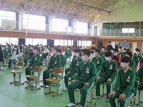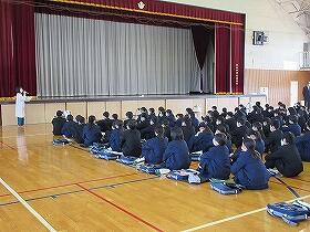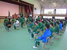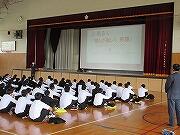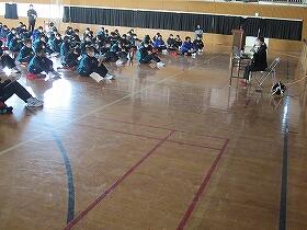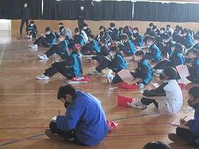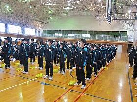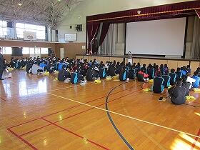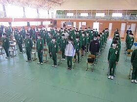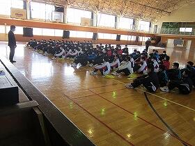 2年生が明日から行われる「立志記念スキー宿泊学習」の最終確認を、スキー場を思わせるような寒さの体育館で行いました。立志式を控えた2年生は並び方も話の聞き方もしっかりしていて、様々な準備をする中で成長し、出かける前にすでに1段、大人への階段を登ったようでした。