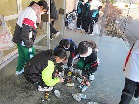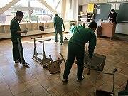 来週月曜日に迫った卒業式に向けて1、2年生が準備を行いました。基本は2年生が体育館の中を、1年生が外回りを担当します。今日と明日の2日間で完成させて明後日の予行を行い、その後最終的に細部まで仕上げて月曜日に備えます。