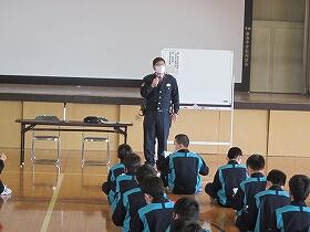 前回の職業学習(旅行業者)に続いて、今回は警察官、消防士の方に来ていただいてお話を伺いました。