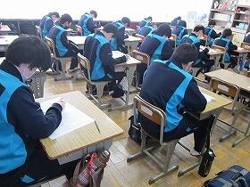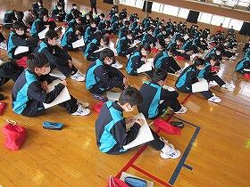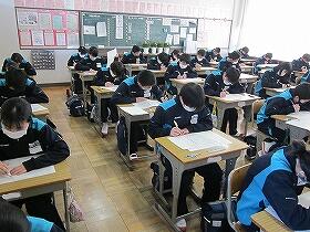 1,2年生が学年末テストの最終日を迎えました。もうひと踏ん張りです。がんばりましょう。