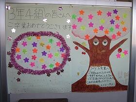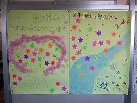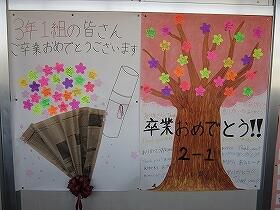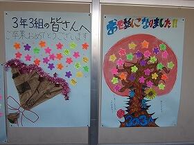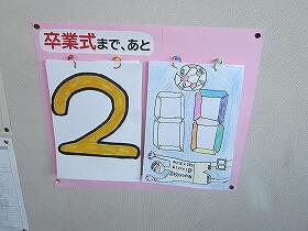 卒業式のときの流れがイメージできるように、昨年の写真を使って動き方などを説明した模造紙が3年生の廊下に張られていました。その横には卒業式まであと28日と書かれていました。