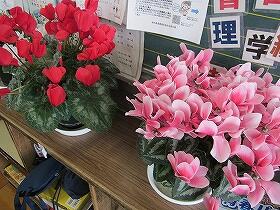 教室を回っているときれいな花が目に留まりました。今週「とちぎ花センター」からいただいた「ペラルゴニウム グランパッソ」という花です。小さなかわいらしい花が心を落ち着かせてくれるようです。その隣には前回いただいた「シクラメン」の花もきれいに咲いていました。