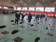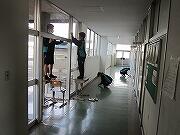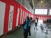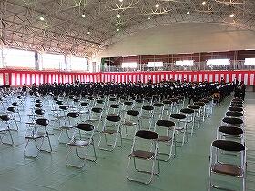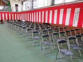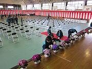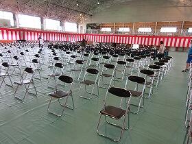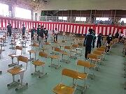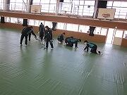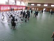 第2弾卒業式準備です。体育館の中はシートをきれいに張り直していすを並べました。卒業生の椅子と保護者用の椅子は、メジャーを張ってそれに合わせてきれいに置きました。紅白幕も張り終わりました。体育館の以外は校舎の窓を中心に昇降口やトイレ、自転車小屋もきれいにしました。