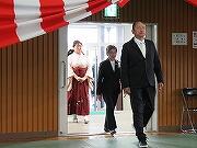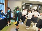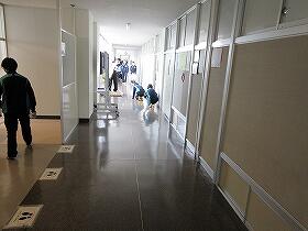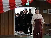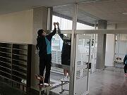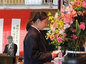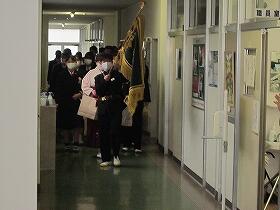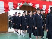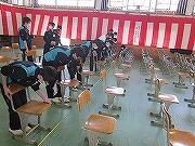 再度、廊下、窓の掃除を1年生が担当し、普段は高くて手が出せていないようなところまで、イスなどに乗ってピカピカになるまできれいにしてくれました。体育館担当の2年生は中だけではなくて渡り廊下の雑巾がけや、玄関前の植え込みの中まできれいにしました。中は花をセッティングして緋毛氈のほこり取り、椅子は在校生の分までメジャーで測って真っ直ぐに並べ、紅白幕をきれいに張り直しました。とにかくきれいです。1、2年生の心が伝わってくるようです。