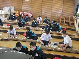 弓道の支部大会が22日に大平中で行われました。全員が4射し、2中以上が二次予選に進出して合計8射の合計的中で順位を決めました。男子で3位入賞を果たしました。団体戦は個人戦の結果でメンバーを決めて行い、女子が第3位になりました。