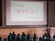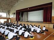 2年生の学年PTAがコスモスホールで行われました。学校での生活や学習、進路についての話の後、先日実施しました「立志記念スキー宿泊学習」の報告があり、スキーの様子や立志式の様子などが映像で紹介されました。