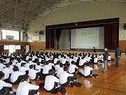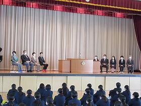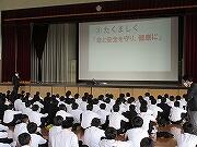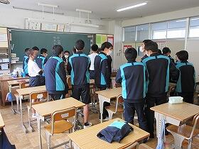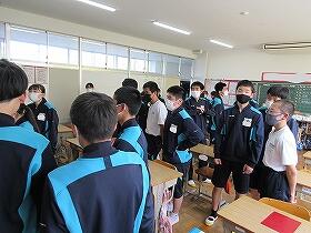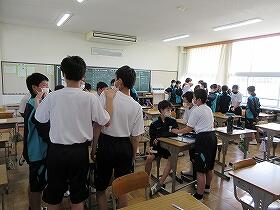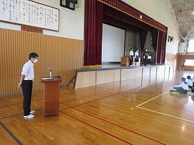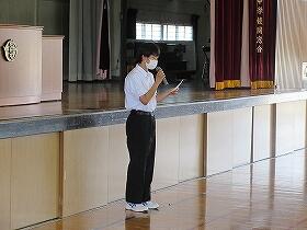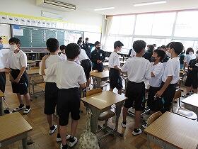夏が来たのかと思うほどの暑さの中でしたが集会を行いました。今日は生活委員会の担当で、渡邉先生から「衣替え・身だしなみ」について連絡と、生活委員会の委員長さんからの話がありました。暑いと集中が途切れがちですが、岩舟中の生徒は皆、最後までしっかりと話を聴いていました。