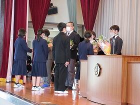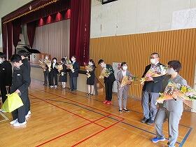 3年生を送る会をリモートで行いました。3年生の中学校3年間を振り返るDVDを鑑賞した後、記念品を花束の贈呈を行いました。