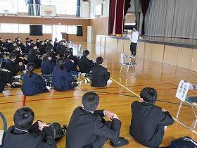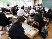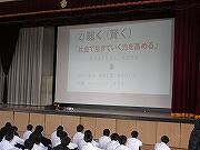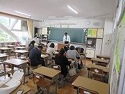 今週と来週の2週にわたって「職業学習」として、実際に働いている方にお話を聴く機会を設けています。今回は近畿日本ツーリストの方に来ていただいてお話をいただきました。生徒は真剣に話を聴くだけでなく、聞き逃さないように熱心にメモを取っていました。