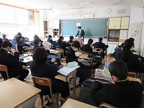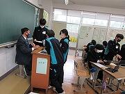 今年度最後の学校運営協議会を行いました。今回は令和4年度の反省から、令和5年度の学校経営の方針についての話、令和5年度の主な行事予定などを報告しました。授業参観では3年生はすでに進路が決定している生徒、昨日、今日の特色選抜試験を受けた生徒、そして3月の試験を控えている生徒と様々ですが、自分のことだけでなく友達のことを考え、しっかりと授業を受ける姿にお褒めの言葉をいただきました。1、2年生の授業では、タブレットを活用した授業や心肺蘇生法、AEDの使い方などの授業も見ていただきました。