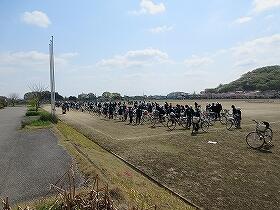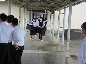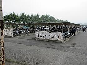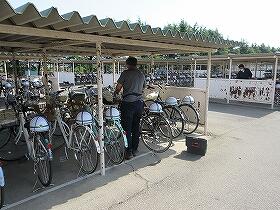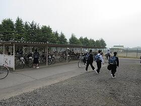 自転車小屋には多くの生徒が集まっていました。時間に余裕をもって登校しているようです。