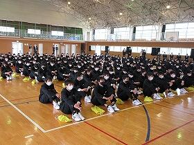 3年生が卒業式の練習を体育館で行っていました。本番を見据えての緊張感のある練習風景でした。