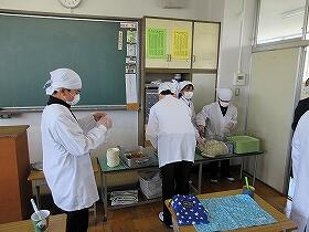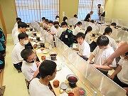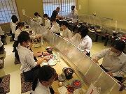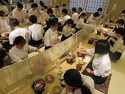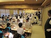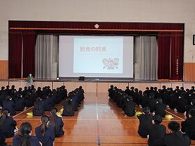 今週の給食週間に合わせて集会をリモートで行いました。作文、ポスター、標語の表彰に加え、テーマメニューの優秀作を各学年から1クラスずつ、そして「給食よく食べたで賞」を各クラス1名ずつ表彰しました。その後で給食委員会の生徒がクイズを交えて給食をより理解できるような、興味をもつような内容のプレゼンをしてくれました。調理員さんへの感謝の言葉を書き、作文・ポスター・標語、そして食事訓の作品を作り、集会を行ったことよって、給食について改めて考える機会になったことでしょう。