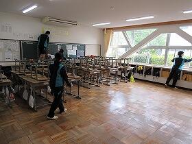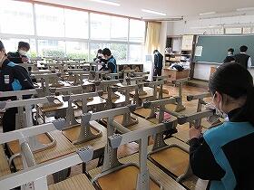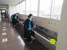 県立高校の一般試験の今日、すでに進路が決まっている生徒たちが、試験に行っている仲間の分まで3年間の感謝を込めて教室を中心に掃除を行いました。