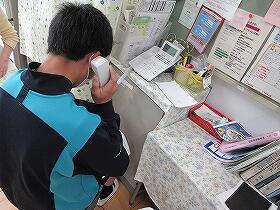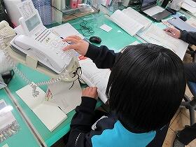 ちょうど1か月後の職場体験学習のために、体験させていただく事業所に事前打ち合わせのためのアポを取る電話をかけていました。お願いする事業所は前もって教員が決めますが、そこから先は生徒たちが自分たちで行います。まずは事前打ち合わせをしていただく日時を決める電話です。初めて話をする人に自分たちの要望を伝え決定します。受話器を持つ手から緊張が伝わってきました。次は実際に事業所に行って時間や持ち物、注意することなどを聞いてきます。