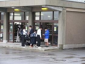 あまりにも暗くて、写真がうまく撮れませんでした。しかも3台しか撮れなくてすみません。でも生徒たちはバスの中から元気に手を振って出発していきました。