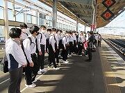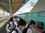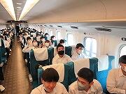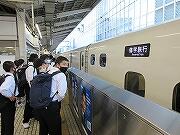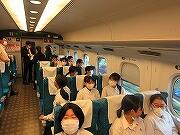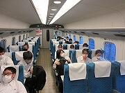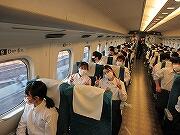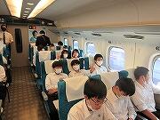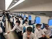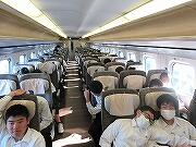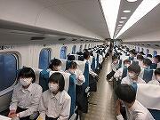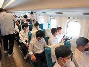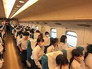 東京駅で修学旅行専用列車に乗り込みました。京都まで2時間15分。速くなりました。