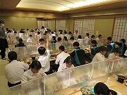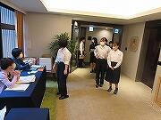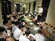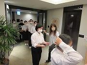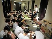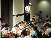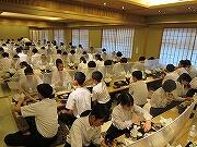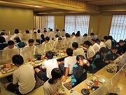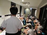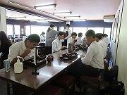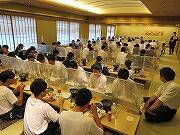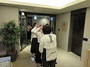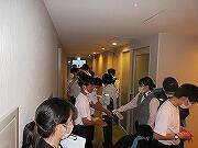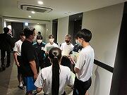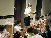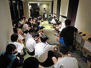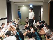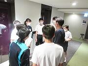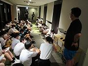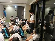 班長会議を行いました。適当な大きさの部屋がなかったためエレベーター前のスペースを使いました。各係の代表から今日一日を振り返っての反省点を発表してもらいました。さすがに代表となると責任感を持ってしっかり細部まで見ていると感心しました。そしてその発表を一語一句聞き逃さないようにメモを取る姿にまた感心しました。間違いなく明日は今日以上の行動がとれることと思います。すばらしい。