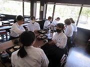 京都について、これからバスで1日目の見学地に向かいます。私は2組と一緒に平等院に向かいました。まずは朝が早かったので腹ごしらえから。