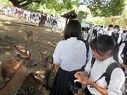 ところで、岩舟中学校では修学旅行中にできる範囲で「エコ」な活動をしてくることにしました。その一つとして、お土産を買ったときの手提げ袋を使わないですむように、エコバッグを全員に配ります。