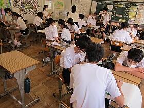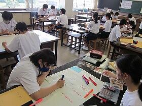 先週から教育実習に来ている先生が研究授業を行いました。生徒も積極的に挙手して発言するなど、生徒が生き生きと活動する授業でした。