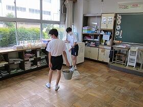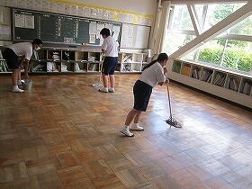 1学期も残り少なくなり大掃除をしました。机とイスの足に付いているごみを落として、床を水拭きして、普段手の回らないところまで丁寧にきれいにしました。
