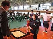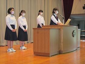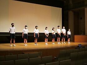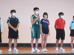 いよいよ明後日から本格的に総体の地区大会が始まります。もうすでに女子ソフトテニス部は3日にスタートしていますが、その他の部はこれからです。そこで各部の部長さんがユニフォームを着て、最後の大会に向けての抱負を力強く発表しました。吹奏楽部も30日にコンクールがありますので、そこに向けての抱負を、クラブチームは複数の競技・チームがありますが代表で抱負を述べました。そして最後に生徒会役員から全ての部に向けてエールが送られました。