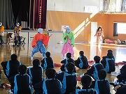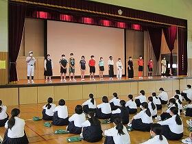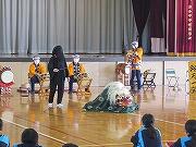 1年生の総合的な学習で「わがまち岩舟」と題して郷土について学ぶ授業を行っています。先週は大慈寺や村檜神社、高勝寺、岩船山・岩舟石について現地まで赴いて実際に見て、話を聞いて学びました。今回は「弁天一座」の方々に来ていただいて笛や太鼓の演奏や踊りを披露していただき、歴史と文化に触れることができました。初めて見る伝統の踊り、そして文化に釘付けになっているようでした。