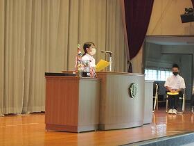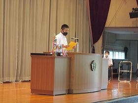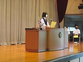 69日間の1学期が終了しました。各学年の代表の生徒が1学期を振り返って感想を述べてくれました。今日は全国的にコロナが流行ってきていることや、気温が高くなる予報でしたので教室で放送を使って行いました。